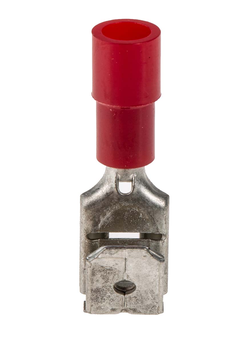 This is Insulated Crimp Piggyback Terminal 6.35 x 0.8mm 0.5mm² to 1.5mm² 22AWG to 16AWG Red manufactured by RS Pro. The manufacturer part number is 613-9918. It is supplied as unshrouded. The bespoke tab is 0.8mm thick. The tab is 6.35mm wide. The wire has a maximum size of 1.5mm². In addition, female is the available "Gender" of the product. It has a decent red colour. It allows crimp termination method. While the minimum wire size AWG includes 22awg. Its tab size is about 6.35 x 0.8mm . It has a robust pc insulation material. It has an overall length of 23mm. Insulation Option: insulated. Its maximum wires size includes 16awg. On the other hand, the wire has 0.5mm² of minimum size. It comes in piggyback terminal configuration. The product is made from sturdy brass materials.