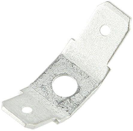 This is 2 x 45° Mount Angle Stud Mount Tab Terminal 6.35 x 0.8mm Tin Plated manufactured by RS Pro. The manufacturer part number is 125-1988. It is supplied as unshrouded. The bespoke tab is 0.8mm thick. The tab is 6.35mm wide. In addition, male is the available "Gender" of the product. It allows stud termination method. Its tab size is about 6.35 x 0.8mm . The high-quality tin is used as contact plating material. It has an overall length of 28.5mm. Insulation Option: uninsulated. It comes in pcb tab configuration. The product is made from sturdy brass materials.