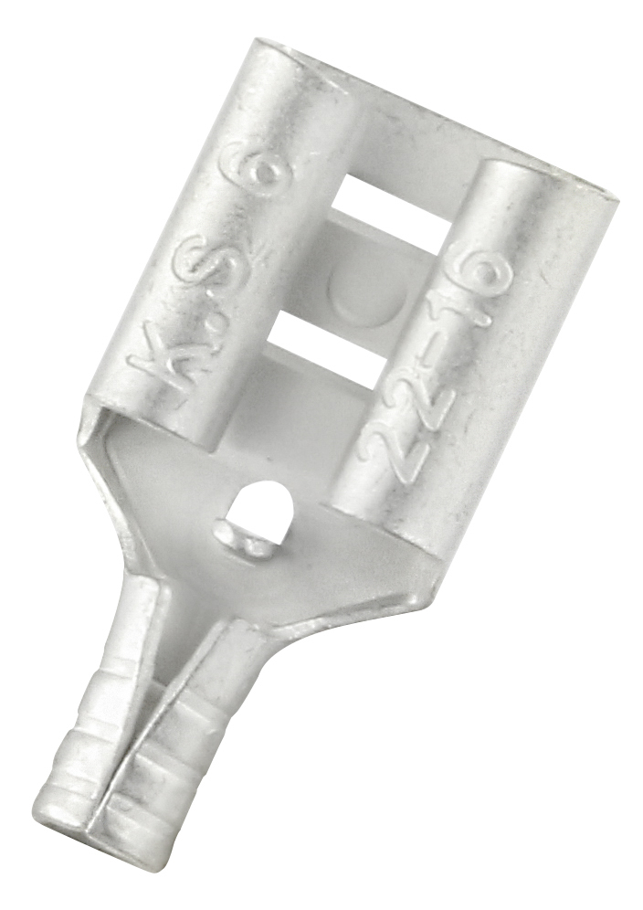 This is Crimp Quick Disconnect Terminal 0.8 x 6.35mm Tab Size 0.5 → 1.5 mm² 22 → 16 AWG Wire Size manufactured by RS PRO. The manufacturer part number is 178-8317. The bespoke tab is 0.8mm thick. On the other hand, the wire has 0.5mm² of minimum size. The tab is 6.35mm wide. The wire has a maximum size of 1.5mm². In addition, female is the available "Gender" of the product. It allows crimp termination method. While the minimum wire size AWG includes 22awg. Its tab size is about 0.8 x 6.35mm . The high-quality tin is used as contact plating material. It has an overall length of 7.65mm. Its maximum wires size includes 16awg. Concerning wire's size, it is 0.5 → 1.5 mm², 22 → 16 awg. It comes in receptacle configuration. The product is made from sturdy brass materials.