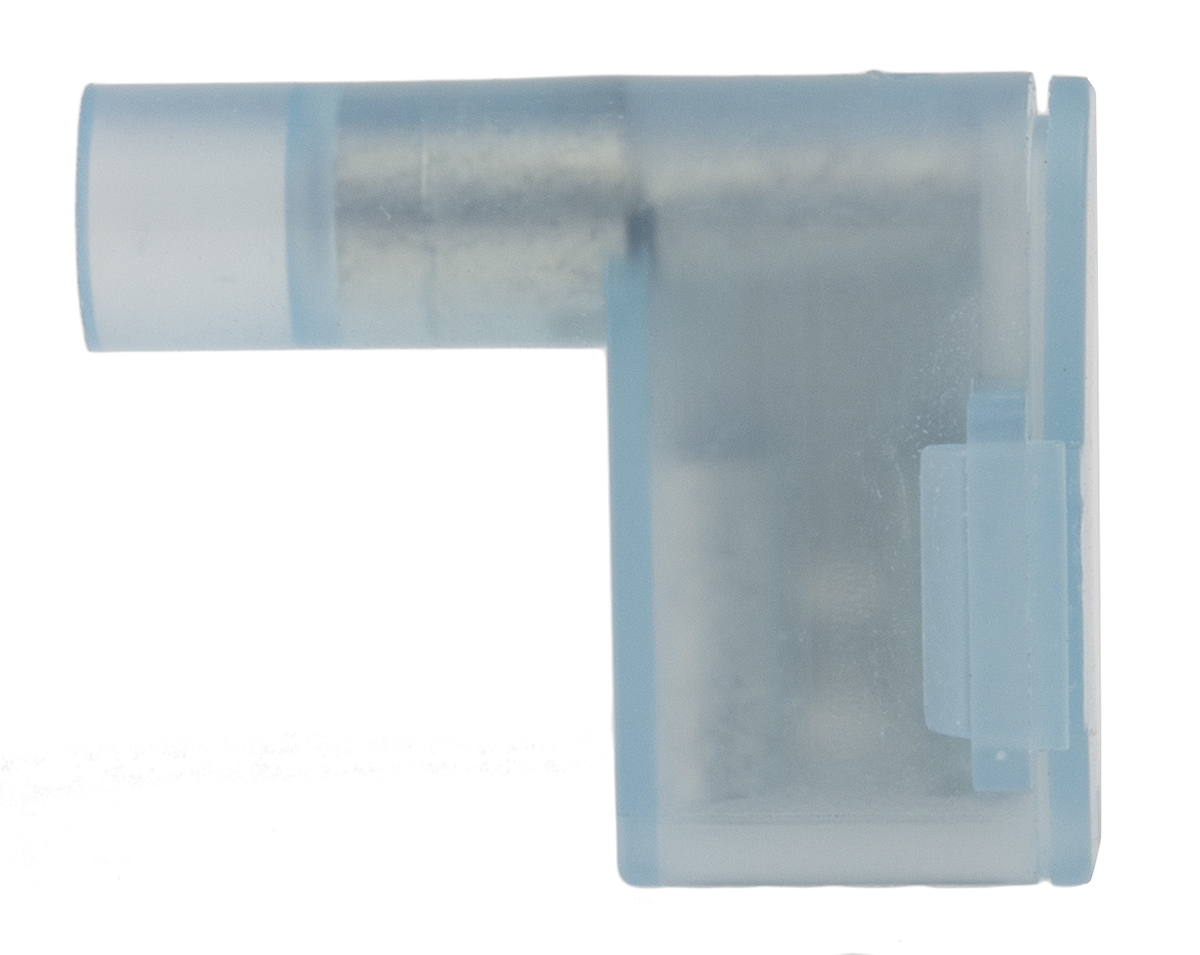 This is NYLON-INSULATED FLAG FEMALE DISCONNECTOR manufactured by RS PRO. The manufacturer part number is 178-8346. The bespoke tab is 0.8mm thick. The tab is 6.35mm wide. The wire has a maximum size of 2.5mm². In addition, female is the available "Gender" of the product. It has a decent blue colour. It allows crimp termination method. While the minimum wire size AWG includes 16awg. Its tab size is about 6.35 x 0.8mm . It has a robust nylon insulation material. It has an overall length of 20.8mm. Insulation Option: insulated. Its maximum wires size includes 14awg. On the other hand, the wire has 1.5mm² of minimum size. It comes in flag terminal configuration. The product is made from sturdy brass materials.