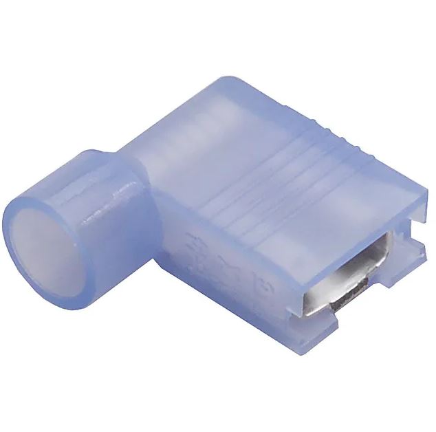 This is 19007 Blue Insulated Crimp Quick Disconnect Terminal 6.35 x 0.81mm Tab Size manufactured by Molex. The manufacturer part number is 190070021. It is supplied as shrouded. The bespoke tab is 0.81mm thick. The tab is 6.35mm wide. In addition, female is the available "Gender" of the product. It has a decent blue colour. It allows crimp termination method. While the minimum wire size AWG includes 16awg. Its tab size is about 6.35 x 0.81mm . It has a robust nylon insulation material. The product 19007, is a highly preferred choice for users. Insulation Option: insulated. Its maximum wires size includes 14awg. Concerning wire's size, it is 16 awg. It comes in flag terminal configuration.