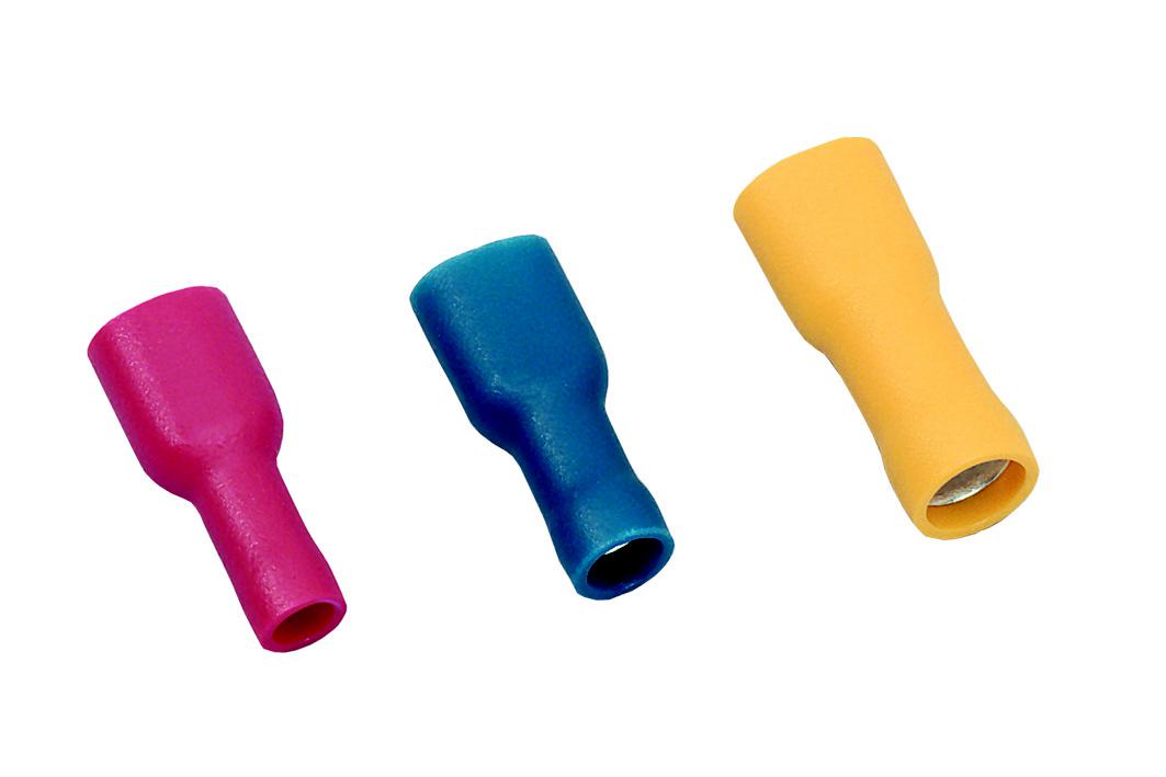 This is Insulated Female Spade Connector Fully Preinsulated Female Disconnects 4.8 x 0.8mm Tab Size manufactured by MECATRACTION. The manufacturer part number is C100SQAP4,8-8. The bespoke tab is 0.8mm thick. The tab is 4.8mm wide. In addition, female is the available "Gender" of the product. Its tab size is about 4.8 x 0.8mm . Insulation Option: insulated. It has a Spade Connector Type of tab terminal . It comes in fully preinsulated female disconnects configuration.