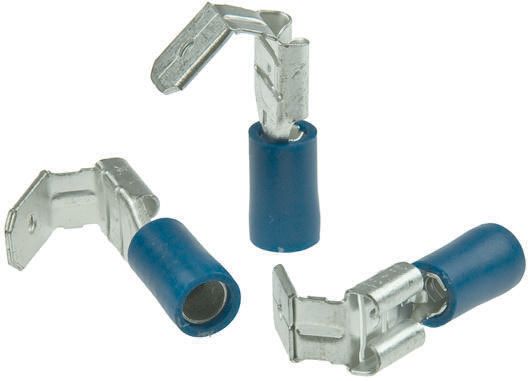 This is Blue Insulated Female Spade Connector Piggyback Terminal 6.35 x 0.8mm Tab Size 1.5mm² to 2.5mm² manufactured by RS PRO. The manufacturer part number is 534-711A. It is supplied as unshrouded. The bespoke tab is 0.8mm thick. The tab is 6.35mm wide. The wire has a maximum size of 2.5mm². In addition, female is the available "Gender" of the product. It has a decent blue colour. It allows crimp termination method. While the minimum wire size AWG includes 16awg. Its tab size is about 6.35 x 0.8mm . The high-quality tin is used as contact plating material. It has an overall length of 20mm. Insulation Option: insulated. Its maximum wires size includes 14awg. On the other hand, the wire has 1.5mm² of minimum size. It comes in piggyback terminal configuration. It has a robust vinyl insulation material. The product is made from sturdy brass materials.