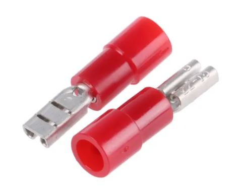 This is Red Insulated Female Spade Connector Receptacle 2.8 x 0.8mm Tab Size 0.5mm² to 1.5mm² manufactured by RS PRO. The manufacturer part number is 270-7581. It is supplied as unshrouded. The bespoke tab is 0.8mm thick. The wire has a maximum size of 1.5mm². The tab is 2.8mm wide. The product has a straight orientation. In addition, female is the available "Gender" of the product. It has a decent red colour. It allows crimp termination method. While the minimum wire size AWG includes 22awg. On the other hand, the wire has 0.5mm² of minimum size. Its tab size is about 2.8 x 0.8mm . It has a robust polycarbonate insulation material. The high-quality tin is used as contact plating material. It has an overall length of 19.6mm. Insulation Option: insulated. It has a Spade Connector Type of receptacle . Concerning wire's size, it is 0.5 → 1.5 mm², 22 → 16 awg. It comes in receptacle configuration. Its maximum wires size includes 16awg. The product is made from sturdy brass materials.
