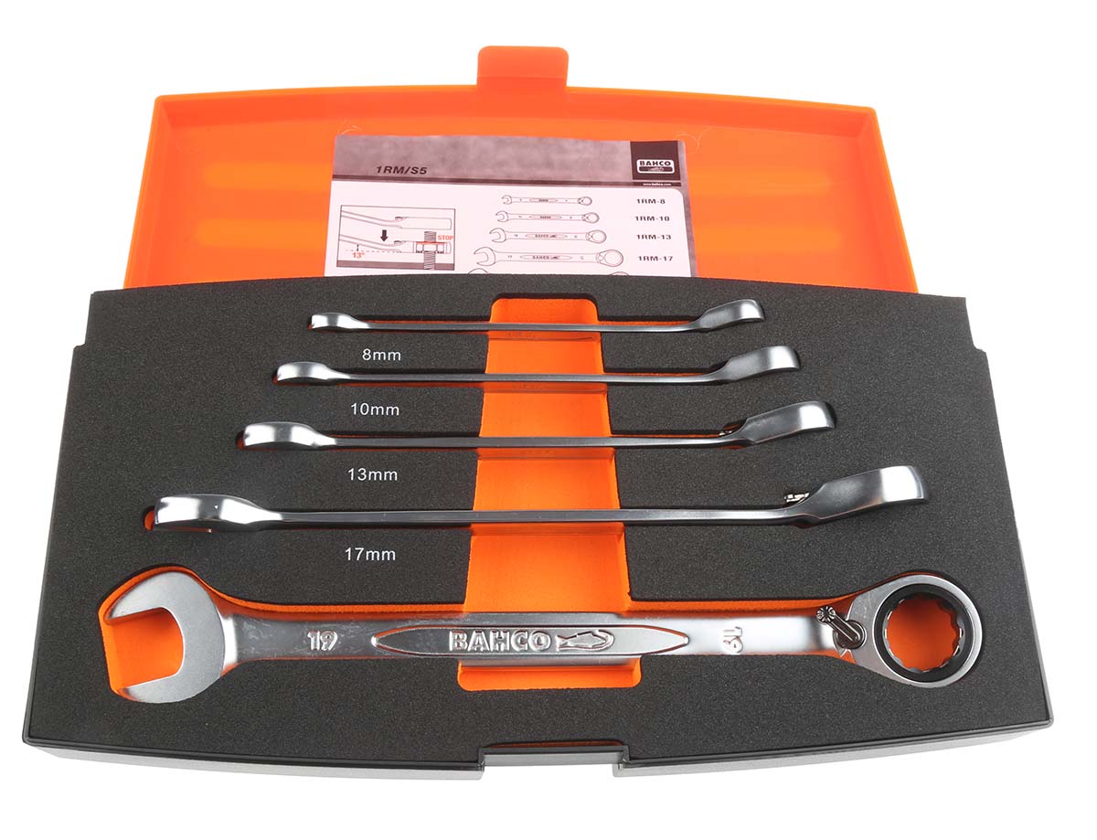 Benefits of Bahco 1RM/S5, 5-Piece Alloy Steel Ratchet Combination Spanner Set, 8 → 19 mm: