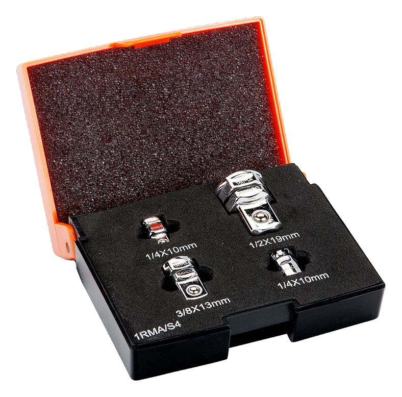 Special Features of Bahco 1RMA/S4, 4-Piece Alloy Steel Ratchet Wrench Adopter Set: