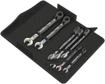 This is 8 Pieces Imperial Combination Ratchet Spanner Set manufactured by Wera. The manufacturer part number is 05020093050. This is a type of ratchet combination wrench set, a set with user-desired tools. Additionally, it is 1/2 in x 171 mm, 3/4 in x 246 mm, 3/8 in x 159 mm, 5/16 in x 144 mm, 5/8 in x 213 mm, 7/16 in x 165 mm, 9/16 in x 187 mm, 11/16 in x 234 mm in set sizes . The product consists of 8 pieces.