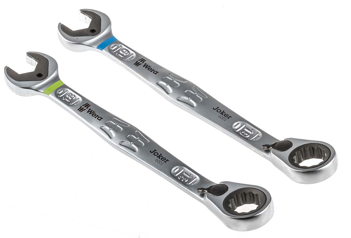 This is 11 Piece Combination Ratchet Spanner Set manufactured by Wera. The manufacturer part number is 020091. This is a type of combination ratchet spanner set, a set with user-desired tools. The product joker 6001, is a highly preferred choice for users. VDE/1000V Approval Options - no. Additionally, it is 8 → 19 mm in set sizes . The product consists of 11 pieces.