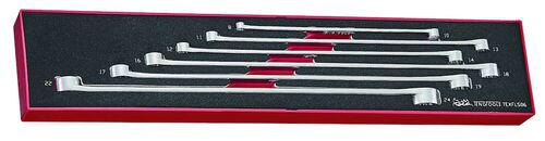 This is 6-Piece Spanner Set 8 x 10 mm 11 x 13 mm 12 x 14 mm 16 x 18 mm 17 x 19 mm 22 x 24 mm manufactured by Teng Tools. The manufacturer part number is TEXFLS06. This is a type of long double ring spanner set, a set with user-desired tools. VDE/1000V Approval Options - no. Additionally, it is 8 x 10 mm, 11 x 13 mm, 12 x 14 mm, 16 x 18 mm, 17 x 19 mm, 22 x 24 mm in set sizes . The product consists of 6 pieces.