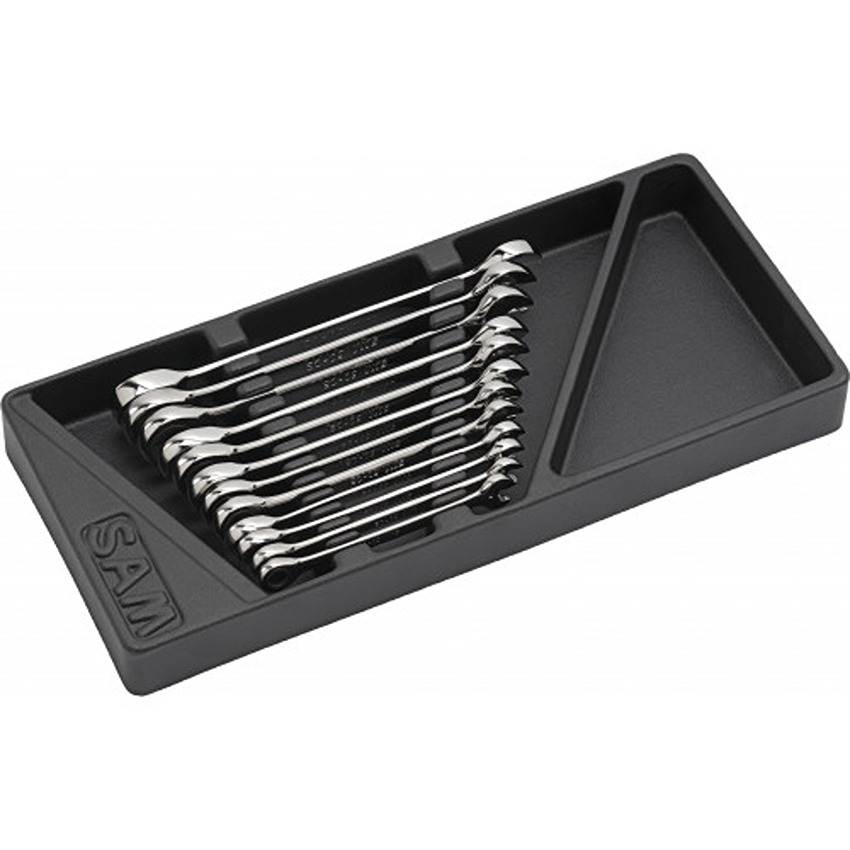 This is 50 Series 12-Piece Combination Spanner Set 8 → 19 mm Chrome Vandium Steel manufactured by SAM. The manufacturer part number is 50-CSI-J12M. VDE/1000V Approval Options - no. Additionally, it is 8 → 19 mm in set sizes . The product 50, is a highly preferred choice for users. The product is made from highly stable and reliable chrome vandium steel. This is a type of combination spanner set, a set with user-desired tools. The product consists of 12 pieces.