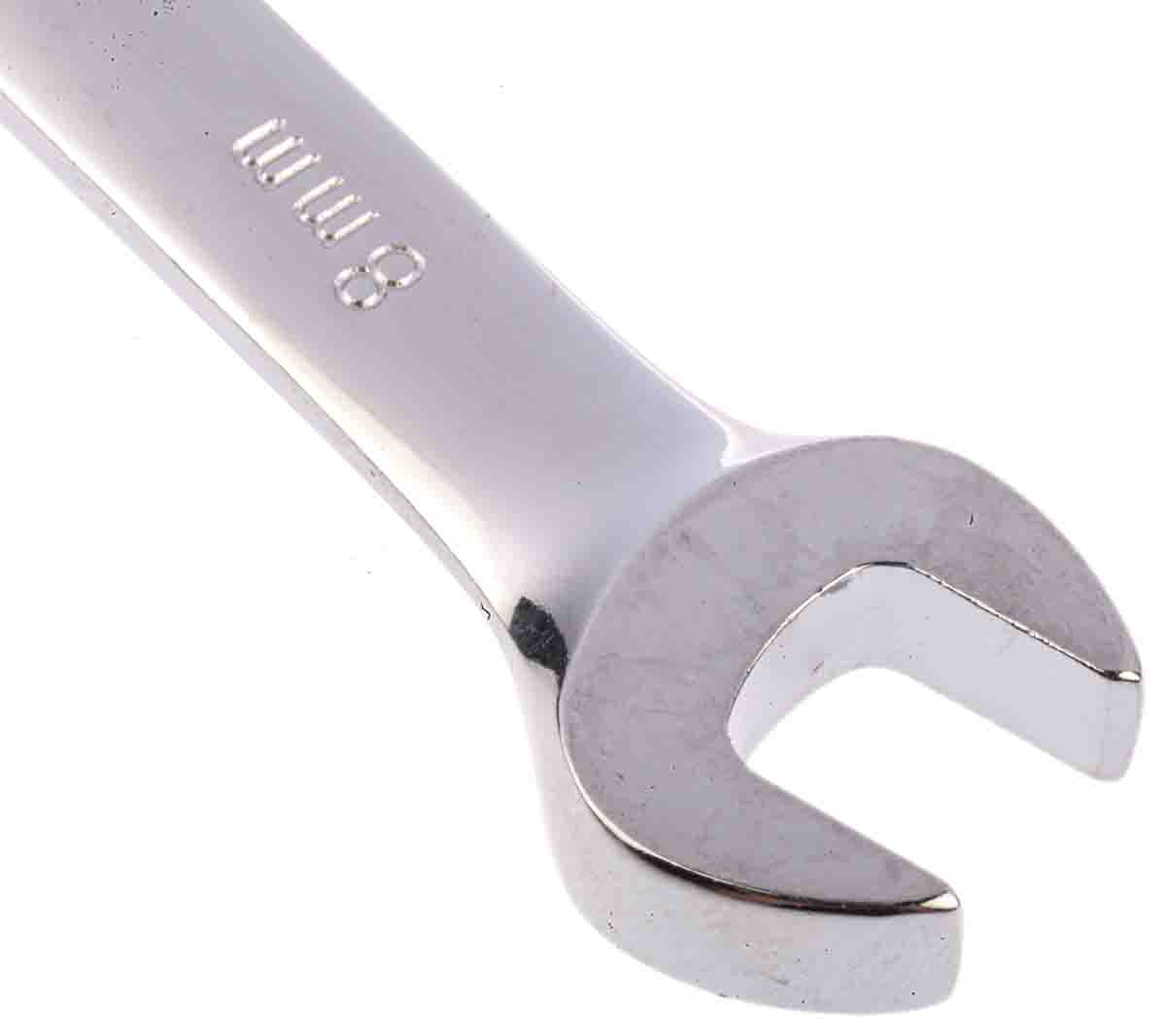 This is 8 mm Combination Ratchet Spanner Pivot Head; Flexible 136 mm length manufactured by RS Pro. The manufacturer part number is 487-189. It is available in metric package. A quality product with a nice chrome finish. Furthermore, it has a/an flex head ratchet spanner type spanner . The product is made from highly stable and reliable chrome vanadium steel. It is double ended yes . Its metric size is approximately 8mm . The product is available in 8 mm size.