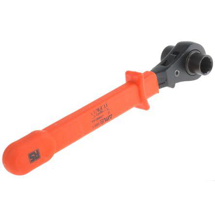 This is 13 x 17 mm Insulated Ratchet Spanner 240 mm Length manufactured by RS Pro. The manufacturer part number is 911-1487. It is available in metric package. VDE/1000V Approval Options - yes. Furthermore, it has a/an ratchet spanner type spanner . The product is made from highly stable and reliable chrome vanadium steel. It has an overall length of 240 mm. It is double ended yes . Its metric size is approximately 13 mm, 17mm . The product is available in 13 x 17 mm size.