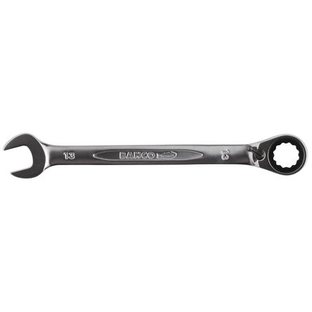 The Bahco 1RM-27 is a high-quality, 27mm ratcheting combination spanner designed for precision, durability, and ease of use in a variety of mechanical applications. It features a double-ended design with a ratcheting mechanism on one end and a fixed spanner on the other, enabling users to work efficiently in spaces where traditional wrenches cannot access. The ratcheting mechanism allows for smooth and continuous operation without needing to lift the tool from the bolt, significantly increasing productivity. Made from high-performance alloy steel, the 1RM-27 boasts a slim profile for improved accessibility, along with a polished finish that provides corrosion resistance. The wrench is precision-engineered to provide a perfect fit on fasteners, reducing the risk of slipping or rounding bolts and nuts.