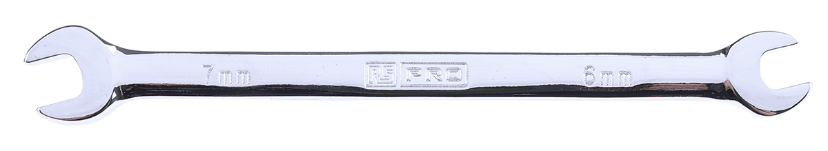 This is 6mmx7mm Double Ended Open Spanner 126 mm length manufactured by RS Pro. The manufacturer part number is 495-3784. It is available in metric package. A quality product with a nice chrome finish. Furthermore, it has a/an open ended spanner type spanner . The product is made from highly stable and reliable chrome vanadium steel. It is double ended yes . Its metric size is approximately 6 mm, 7mm .