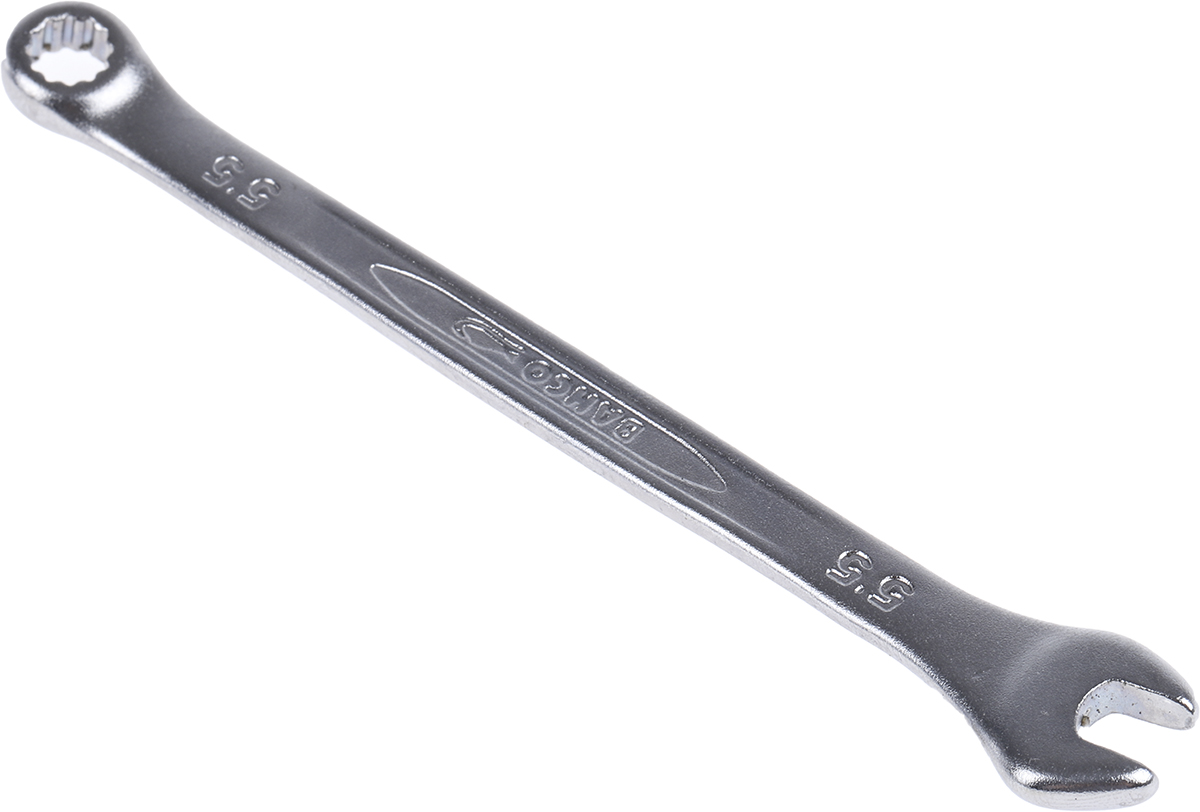 The Bahco 111M-5.5 Combination Spanner represents a pinnacle of engineering precision and versatility in the realm of hand tools. Crafted from high-grade alloy steel, this 5.5mm metric spanner is designed to offer unmatched durability and strength, ensuring a long service life even under rigorous use. Its slim profile and combination design feature an open-ended side for quick engagement with fasteners and a ring end that provides a secure grip, minimizing the risk of slipping or rounding off fasteners. This tool is a testament to Bahco's commitment to quality, embodying the perfect balance between functionality and ergonomic design.