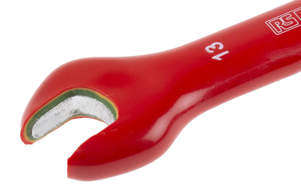 This is Insulated Open End Wrench (1000V) - 13 m manufactured by RS Pro. The manufacturer part number is 176-3408. It is available in metric package. VDE/1000V Approval Options - yes. A quality product with a nice chrome plated finish. Furthermore, it has a/an open ended spanner type spanner . The product is made from highly stable and reliable chrome vanadium steel. It has an overall length of 135 mm. It is double ended no . Its metric size is approximately 13mm . The product is available in 13 mm size.