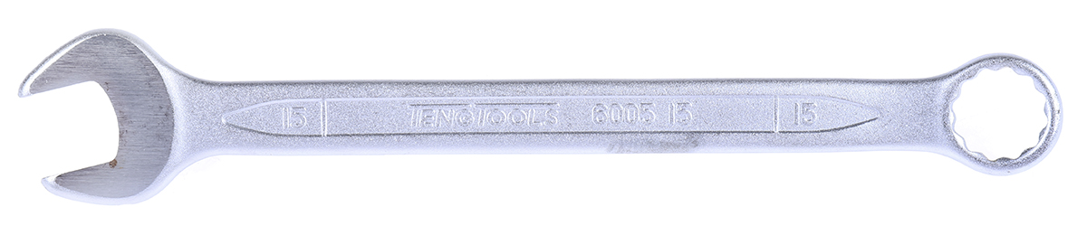 This is No 15 mm Combination Spanner Chrome Vanadium No manufactured by Teng Tools. The manufacturer part number is 600515. It has a non sparking nature no . A quality product with a nice satin finish. Furthermore, it has a/an combination spanner type spanner . The product is made from highly stable and reliable chrome vanadium. It has an overall length of 190 mm. It is height safe no . Its metric size is approximately 15mm .