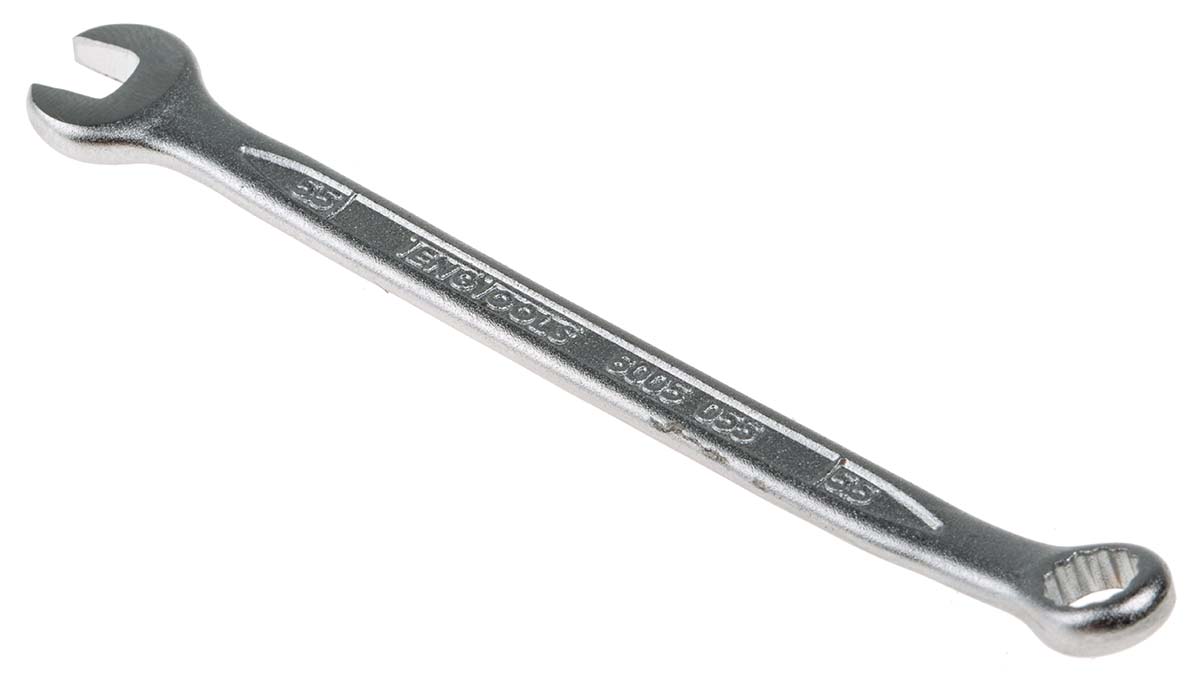 The Teng Tools metric combination spanner which is a ring and open ended spanner combined with the same size opening at each end. It is available with Teng Tools hip grip design on the ring end for contact with the flat side of the fastening for damage reduction and use on rounded nuts and bolts Off set at 15° for easier use on flat surfaces Chrome vanadium with satin finish Designed and manufactured to DIN3113A