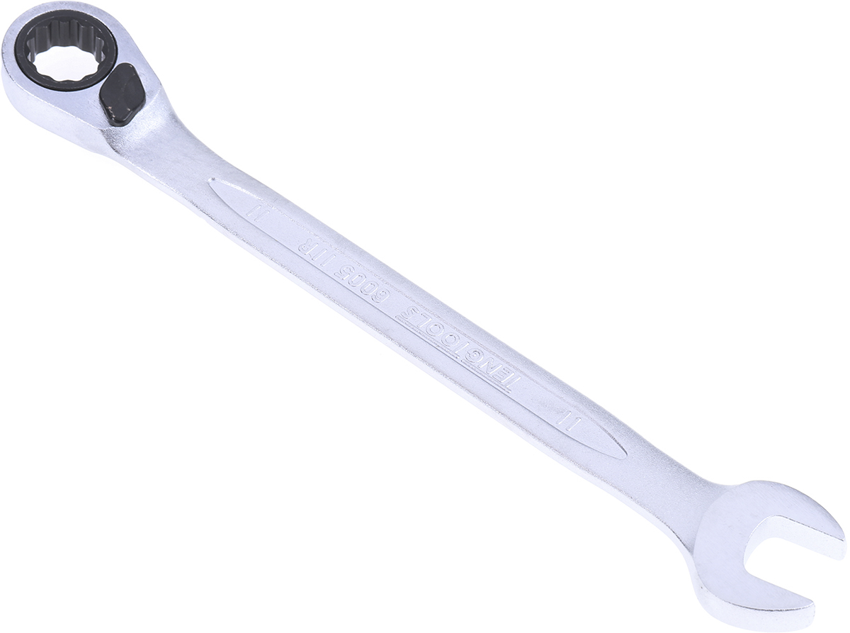 This is No 11 mm Combination Spanner Chrome Vanadium manufactured by Teng Tools. The manufacturer part number is 600511R. A quality product with a nice satin finish. Ratcheting Options - yes. Furthermore, it has a/an combination ratchet spanner type spanner . The product is made from highly stable and reliable chrome vanadium. It has an overall length of 165 mm. It is height safe no . Its metric size is approximately 11mm .
