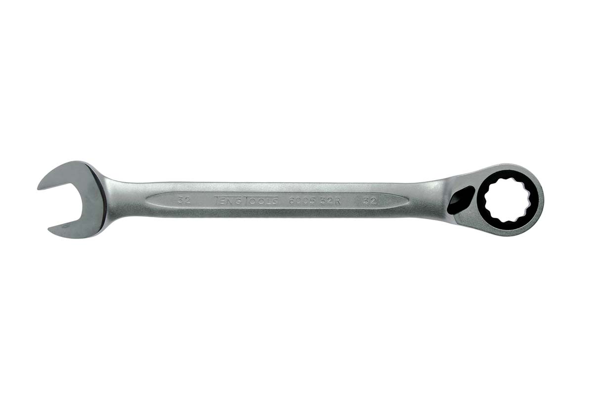 This is No 32 mm Combination Spanner Chrome Vanadium manufactured by Teng Tools. The manufacturer part number is 600532R. A quality product with a nice satin finish. Ratcheting Options - yes. Furthermore, it has a/an combination ratchet spanner type spanner . The product is made from highly stable and reliable chrome vanadium. It has an overall length of 425 mm. It is height safe no . It is double ended yes . Its metric size is approximately 32mm .