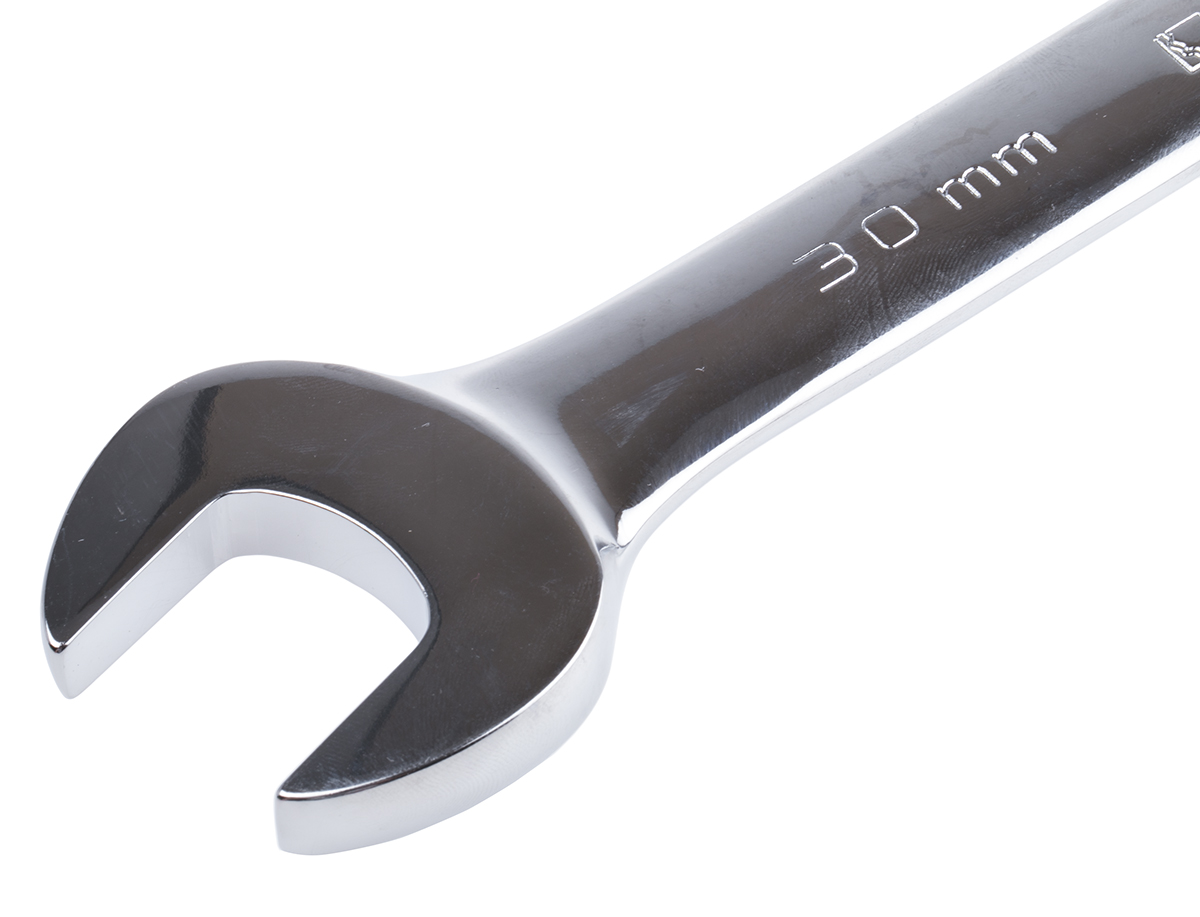 This is 30 mm Combination Ratchet Spanner manufactured by GearWrench. The manufacturer part number is 9130D. It is available in metric package. A quality product with a nice nickel chrome plated finish. Furthermore, it has a/an combination ratchet spanner type spanner . Ratcheting Options - yes. It has an overall length of 402 mm. It is double ended yes . Its metric size is approximately 30mm .