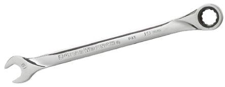 This is 19 mm Combination Ratchet Spanner manufactured by GearWrench. The manufacturer part number is 85019. It is available in metric package. A quality product with a nice chrome finish. Furthermore, it has a/an combination ratchet spanner type spanner . It has an overall length of 12 in. It is double ended yes . Its metric size is approximately 19mm . The product is available in 19 mm size.