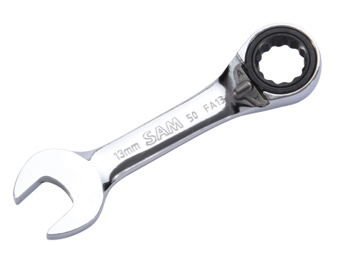 This is Metric Height Safe 13 mm 33/64" Combination Ratchet Spanner Non Sparking manufactured by SAM. The manufacturer part number is 50-FA13. It is available in metric package. It has a non sparking nature no . Furthermore, it has a/an combination ratchet spanner type spanner . It has an overall length of 113 mm. In addition, it has about 33/64in imperial size . It is height safe yes . It is double ended yes . Its metric size is approximately 13mm . The product is available in 13 mm size.