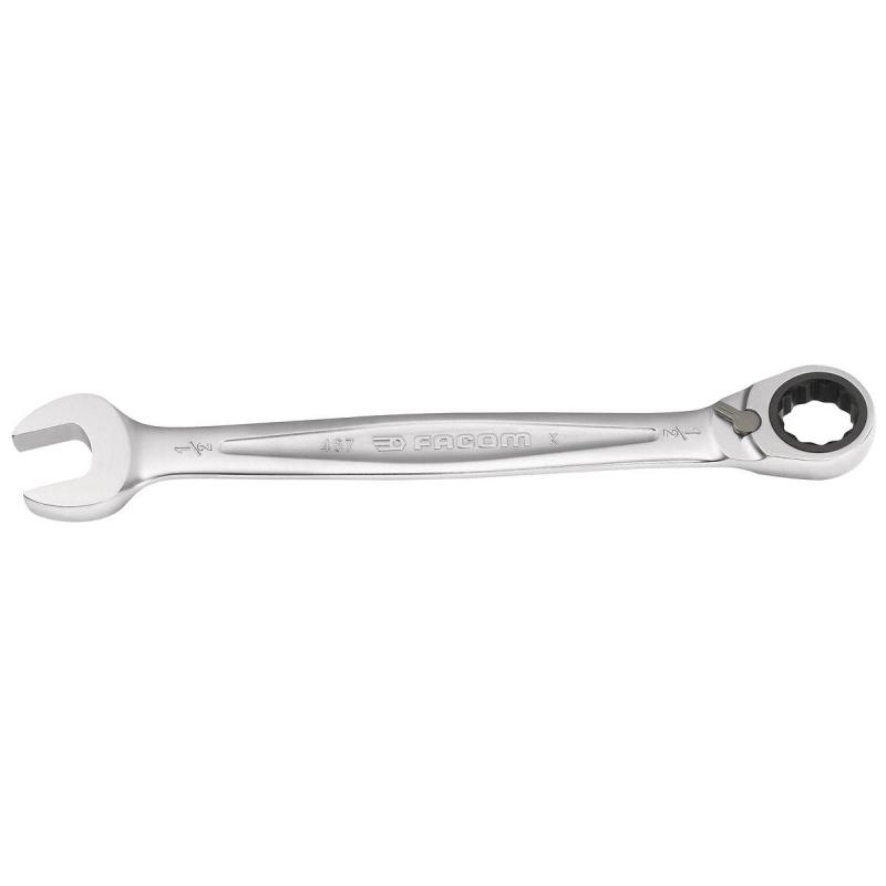 This is Imperial 7/8 in 7/8in Satin Chrome Combination Spanner manufactured by Facom. The manufacturer part number is 467.7/8. It is available in imperial package. A quality product with a nice satin chrome finish. Ratcheting Options - yes. The product 467, is a highly preferred choice for users. The product is made from highly stable and reliable chrome vandium steel. It has an overall length of 287.8 mm. Furthermore, it has a/an combination ratchet spanner type spanner . It is double ended yes . In addition, it has about 7/8in imperial size .