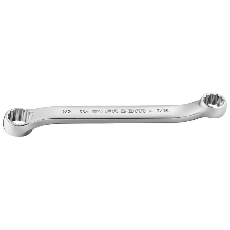 This is Imperial 9/16 x 5/8 in 9/16 x 5/8in Satin Chrome Offset Ring Spanner manufactured by Facom. The manufacturer part number is 56A.9/16X5/8. It is available in imperial package. A quality product with a nice satin chrome finish. Furthermore, it has a/an ring spanner type spanner . The product is available in 9/16 x 5/8 in size. It has an overall length of 145 mm. It is double ended yes . In addition, it has about 9/16 in, 5/8in imperial size .