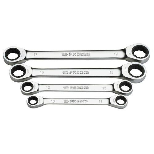 This is Metric 10x11 mm 12x13 mm 16x18 mm 17x19 mm Ratcheting Wrench Set manufactured by Facom. The manufacturer part number is 64.J4.