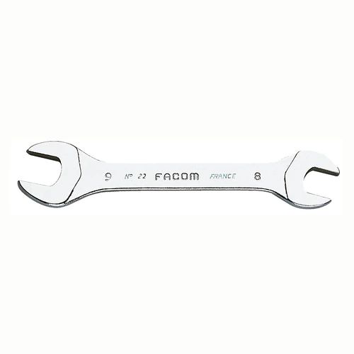 This is Metric 8 x 9 mm Chrome Open Ended Spanner manufactured by Facom. The manufacturer part number is 22.8X9. It is available in metric package. A quality product with a nice chrome finish. The product 22, is a highly preferred choice for users. The product is made from highly stable and reliable chrome vandium steel. It has an overall length of 90 mm. Furthermore, it has a/an open ended spanner type spanner . It is double ended yes . Its metric size is approximately 8 mm, 9mm .