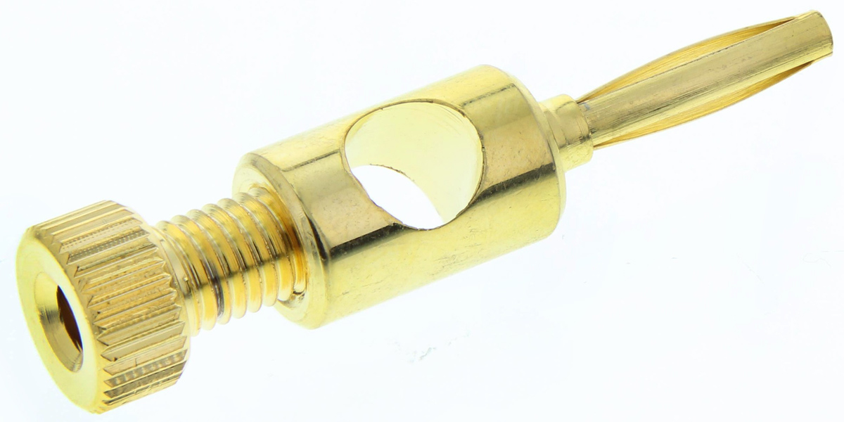 This is Loudspeaker Connector Plug 1 Way 16A Screw Down Termination manufactured by RS Pro. The manufacturer part number is 458-229. The product also features robust brass housing material. The product contains 1 contacts. The product has a straight orientation. It has a decent black colour. This male contact is widely suited for specific applications. Features a 16a current in A. The high-quality gold over nickel is used as contact plating material. The product is designed with a screw termination. loudspeaker connector is a versatile product designed to provide user-defined applications. The connector is of male gender . The product is made from sturdy brass materials.