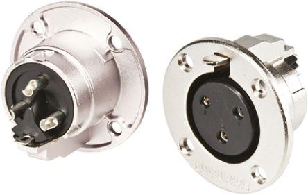 This is RS PRO Panel Mount Loudspeaker Connector Socket 3 Way 20A manufactured by ITT Cannon. The manufacturer part number is EP313P. The product has a current rating of 20a. The product is available in panel mount configuration. In addition, female is the available "Gender" of the product. It has straight body orientation. The product also features robust zinc housing material. The product contains 3 contacts.