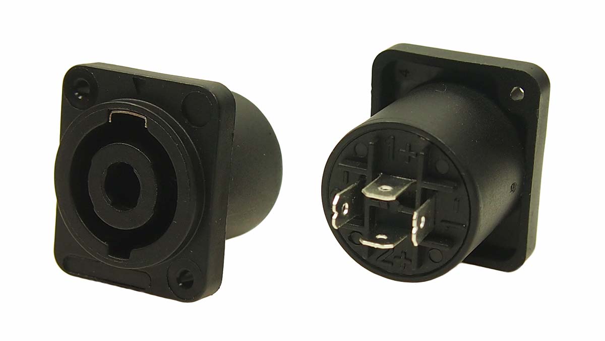 This is Panel Mount Speaker Terminal Socket 4 Way 20A Push In Termination manufactured by RS PRO. The manufacturer part number is 208-0629. The product has a current rating of 20a. The product is available in panel mount configuration. In addition, female is the available "Gender" of the product. It has straight body orientation. It allows push in termination method. The product contains 4 contacts. The product is made from sturdy brass materials.