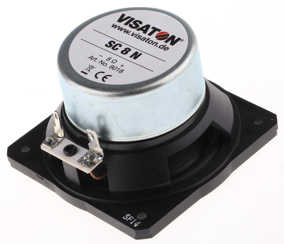 This is Cabinet Speaker 30W nom 50W max 8Ω manufactured by Visaton. The manufacturer part number is SC 8 N 8 OHM. It has a full range type frequency . Its driver is round in shape . It has approximately 30w nominal rated power . It has a maximum 50w rated power . The typical product's weight is 280g. Its diameter is 77.5mm. The product offers 70 hz → 20 khz of frequency response. Moreover, it has 8.1 to 13 cm (5 in) speaker driver size . Furthermore, the product is 77.5mm wide. The product comes in 48.2mm depth. It has a minimum 70 hz frequency response . It has an impedance value of 8ω. It has a maximum 20 khz frequency response . It has a/an speaker driver speaker part .