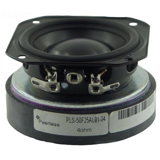 This is manufactured by Peerless by Tymphany. The manufacturer part number is PLS-50F25AL01-04. The frequency range includes 150 hz ~ 20 khz. Port location: top. It is assigned with possible HTSUS value of 8518.29.8000. The product is rohs3 compliant. It features a power rating of 7 w. Additionally, its testing efficiency is 1w/1m. It comes in full range configuration. It has the maximum seated height of 1.469" (37.30mm). 171.46hz is the self-resonant frequency of the product. It possesses half space sensitivity efficiency. In addition, it is reach unaffected. It has an impedance value of 4.42 ohms. While the cone is designed from aluminum (ai) materials. It bears 81.60 efficiency -dBA. It is shipped in bulk package . The product's diameters include 2.244" l x 2.244" w (57.00mm x 57.00mm). The magnet is manufactured from ferrite material. The product features solder eyelet(s) termination style. It has a long 27 weeks standard lead time. Its typical moisture sensitivity level is 1 (unlimited). The product pls, is a highly preferred choice for users. It is a round, square frame product with unique specifications. This product use magnetic technology. The product is designated with the ear99 code number.