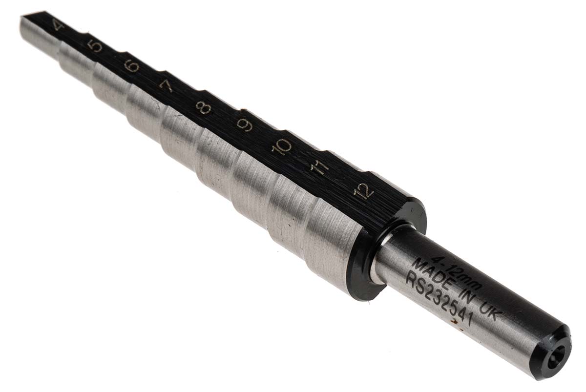 This is High Speed Molybdenum Steel 4 → 12mm Step Drill Bit 8 Steps 3mm Max Drilling Thickness manufactured by RS Pro. The manufacturer part number is 232-541. It has a maximum 12mm size head . It has a minimum 4mm size head . The product is made from highly stable and reliable hss. In addition, the number of steps are 8 . Moreover, it has a 3mm maximum drilling thickness . It has a/an step drill bit type drill bit .
