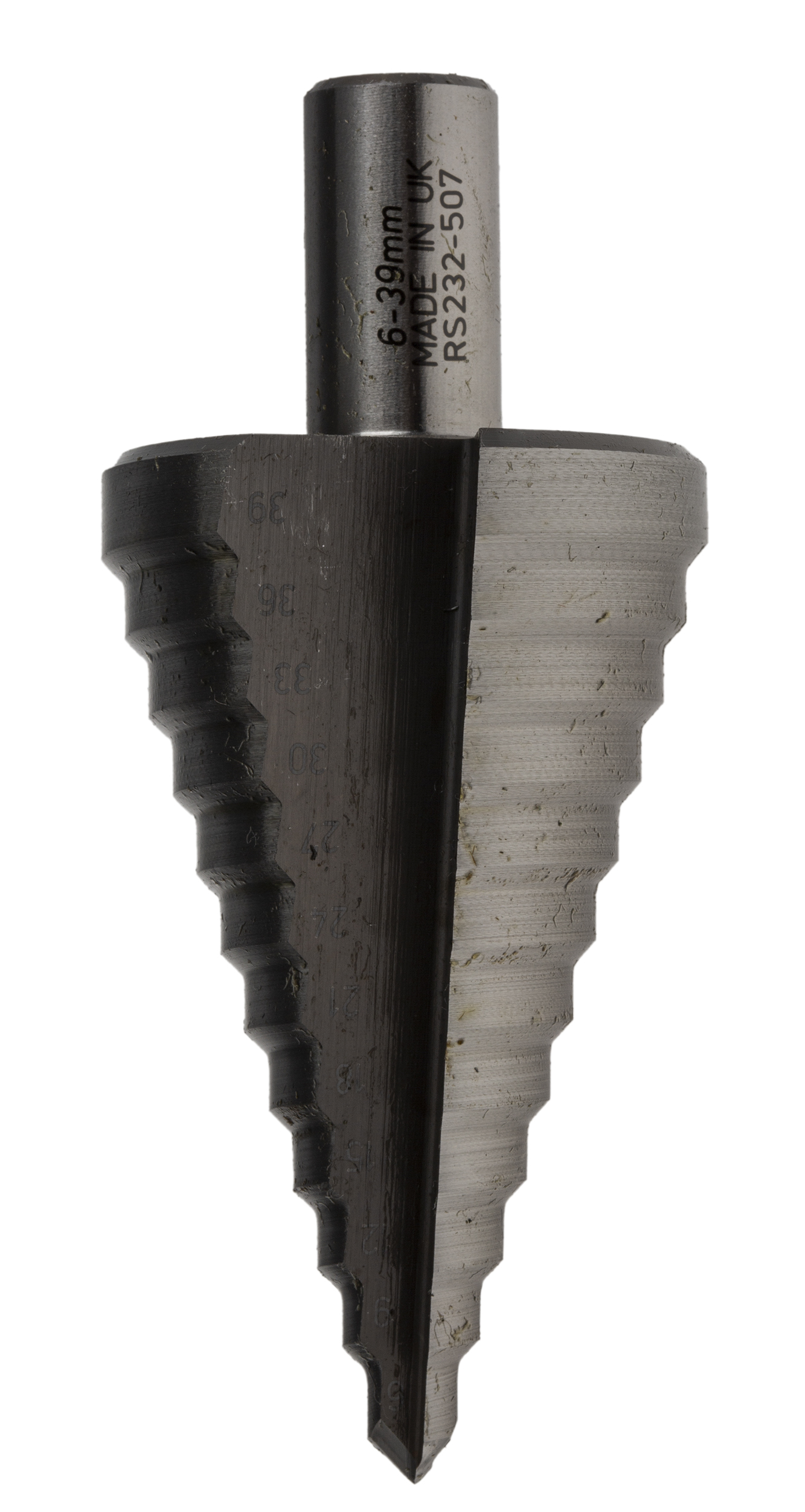 This is HSS 6 → 36mm Step Drill Bit 11 Steps 5mm Max Drilling Thickness manufactured by RS Pro. The manufacturer part number is 232-507. It has a maximum 36mm size head . It has a minimum 6mm size head . The product is made from highly stable and reliable hss. In addition, the number of steps are 11 . Moreover, it has a 3mm maximum drilling thickness . It has a/an step drill bit type drill bit .