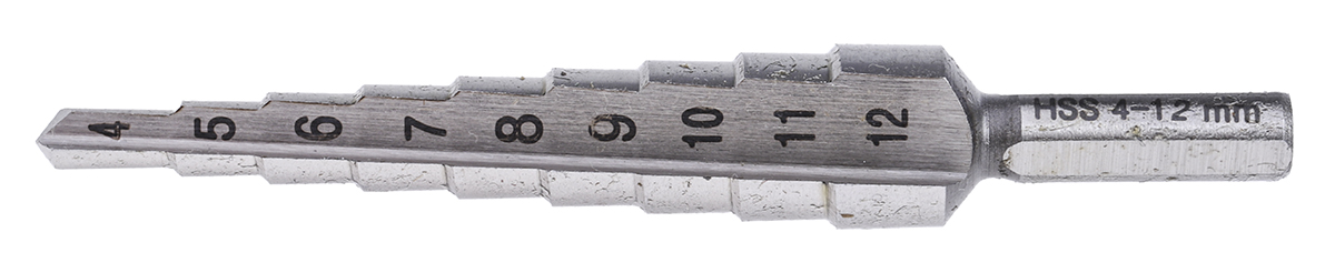 This is HSS 4 → 12mm Step Drill Bit 9 Steps 5mm Max Drilling Thickness manufactured by EXACT. The manufacturer part number is 05321. It has a/an step drill bit type drill bit . It has a minimum 4mm size head . The product is made from highly stable and reliable hss. In addition, the number of steps are 9 . It has a maximum 12mm size head .