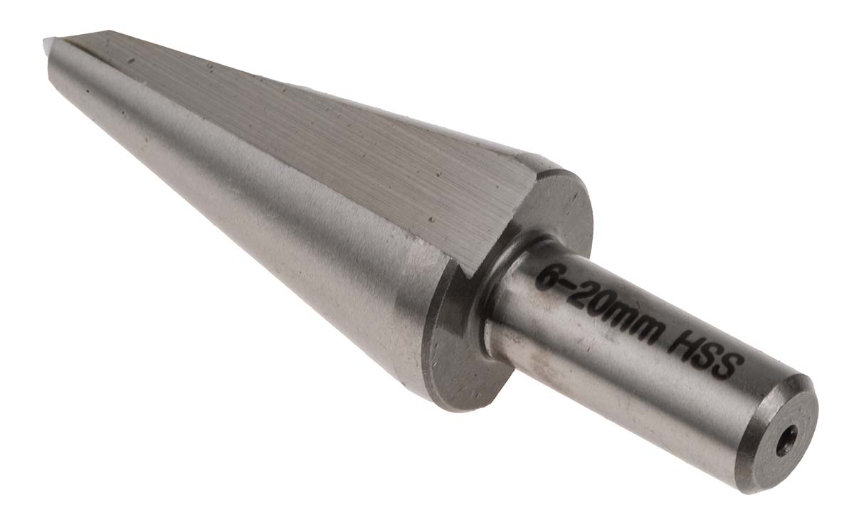 This is HSS 6 → 20mm Cone Cutter 2mm Max Drilling Thickness manufactured by RS Pro. The manufacturer part number is 221-620. It has a/an cone cutter type drill bit . It has a minimum 6mm size head . The product is made from highly stable and reliable hss. It has a maximum 20mm size head . Moreover, it has a 2mm maximum drilling thickness .