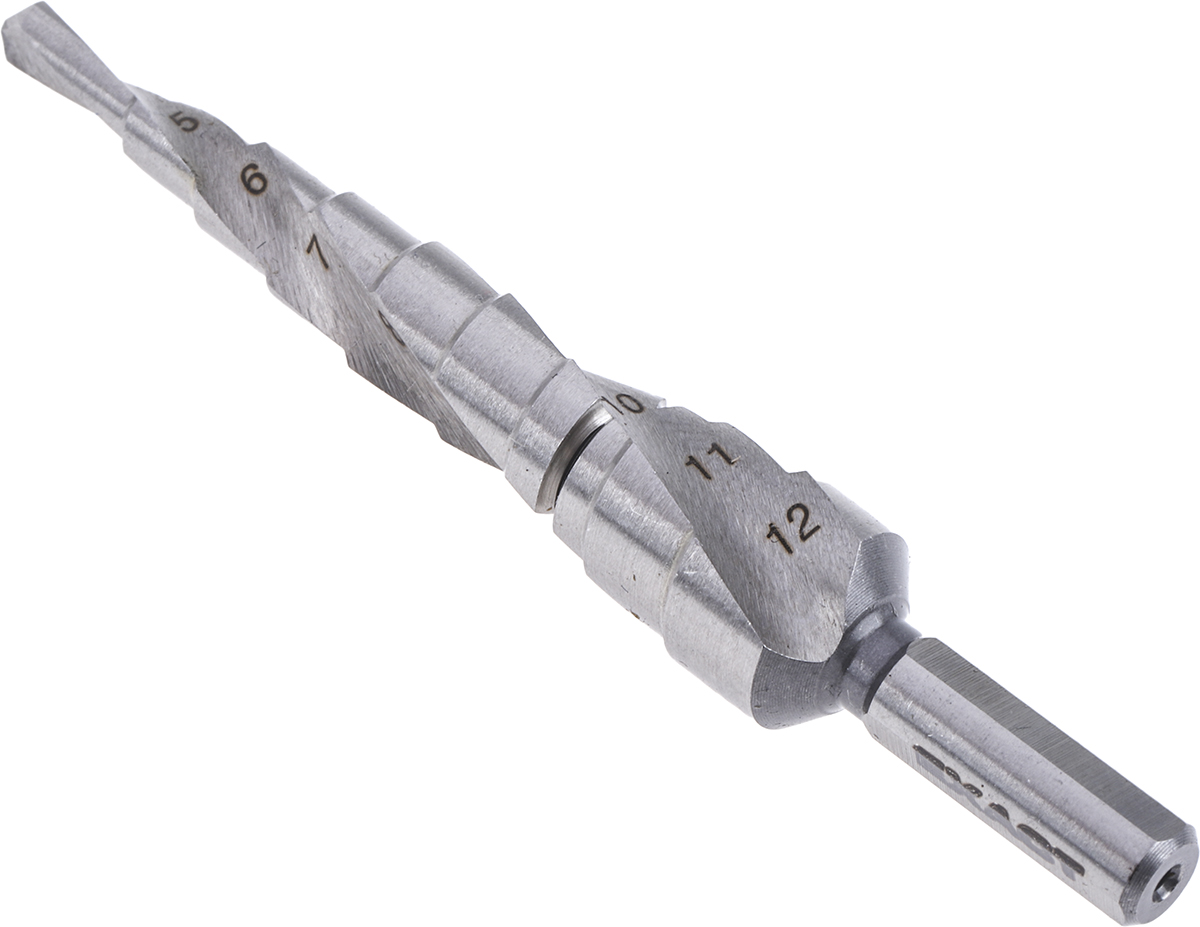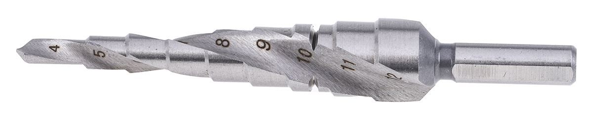 This is HSS 4 → 12mm Step Drill Bit manufactured by EXACT. The manufacturer part number is 07001. It has a/an step drill bit type drill bit . It has a minimum 4mm size head . The product is made from highly stable and reliable hss. It has a maximum 12mm size head .
