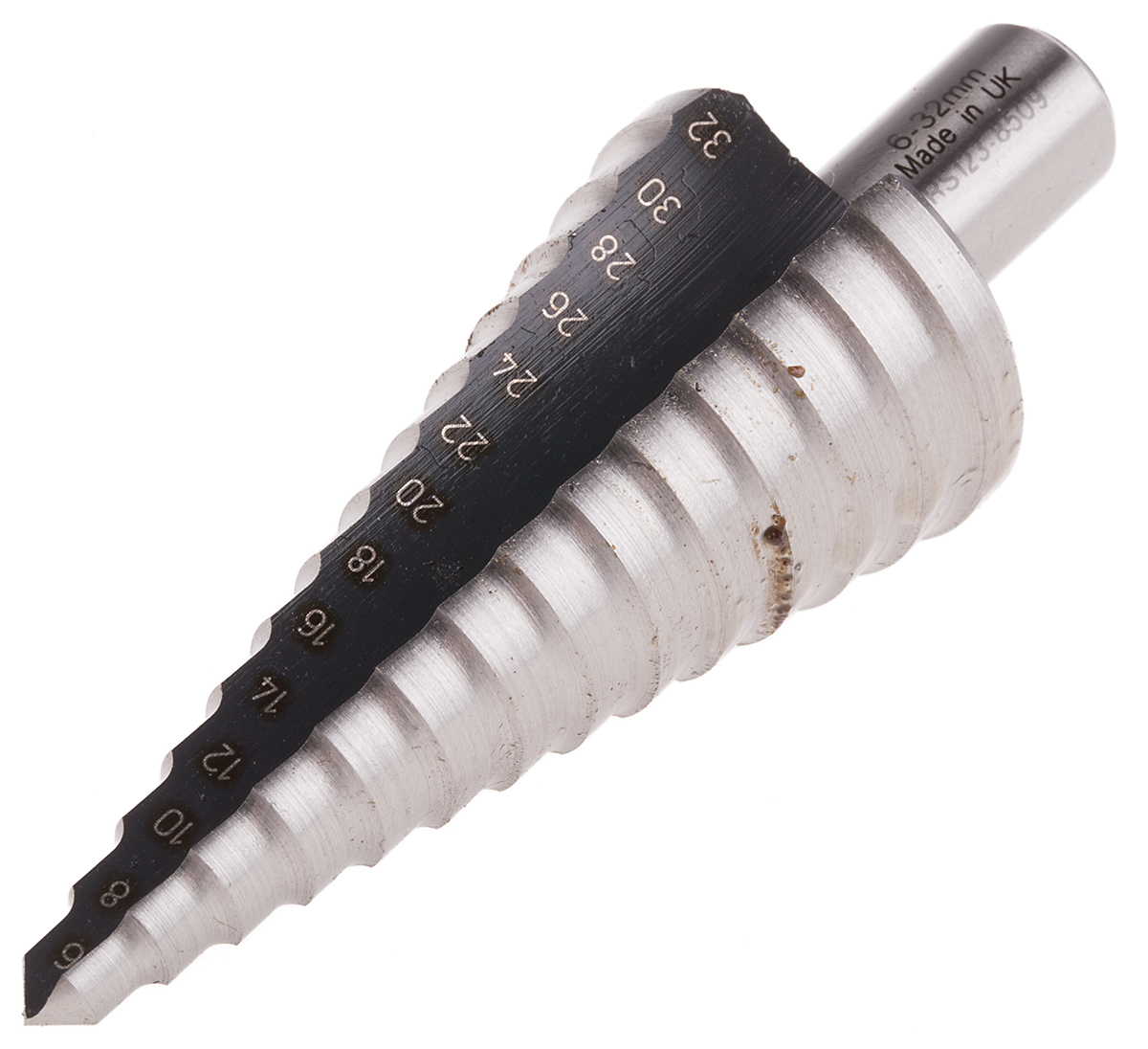 This is HSS Step Drill Bit 12 Steps manufactured by RS Pro. The manufacturer part number is 123-8509. It has a/an step drill bit type drill bit . It has a minimum 6mm size head . The product is made from highly stable and reliable hss. In addition, the number of steps are 12 . It has a maximum 30mm size head .