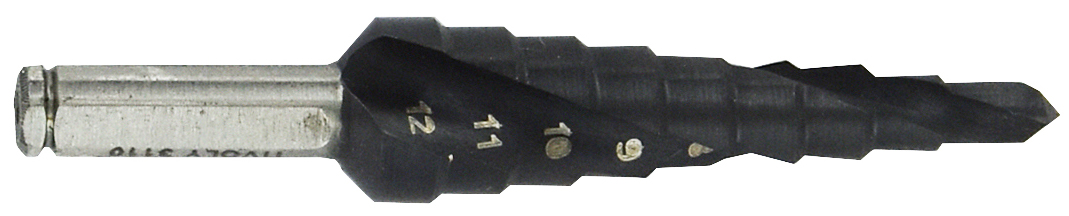 This is High Speed Steel Step Drill Bit 4mm x 12mm manufactured by Tivoly. The manufacturer part number is 11438720412. With 4 → 12mm drill diameter . It has a maximum 12mm size head . It has a minimum 4mm size head . The product is made from highly stable and reliable high speed steel. In addition, the number of steps are 13 . It has a/an step drill bit type drill bit .