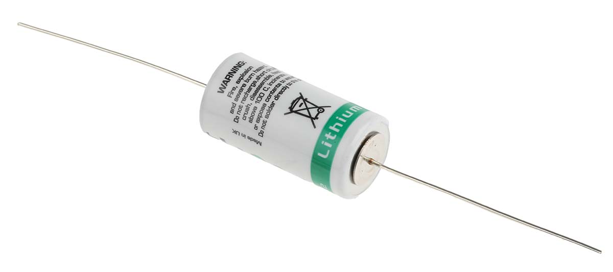 This is 3.6V Lithium Thionyl Chloride 2/3 A Battery 2.1Ah manufactured by Saft. The manufacturer part number is LS17330CNA. The module has the capacity of 2.1ah. The given dimensions of the product include 33.4 x 16.5mm. The nominal voltage of the product is 3.6v. It has a/an lithium thionyl chloride chemistry . The terminal is a wire lead type. The product is available in 2/3 a size.