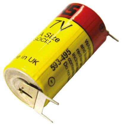 This is 2/3 A Battery 2/3 A 3.6V Lithium Thionyl Chloride manufactured by RS PRO. The manufacturer part number is 593-495. The module has the capacity of 1.7ah. The given dimensions of the product include 33.4 x 16.5mm. The nominal voltage of the product is 3.6v. It has a/an lithium thionyl chloride chemistry . The terminal is a pcb pin type. The product is available in 2/3 a size.