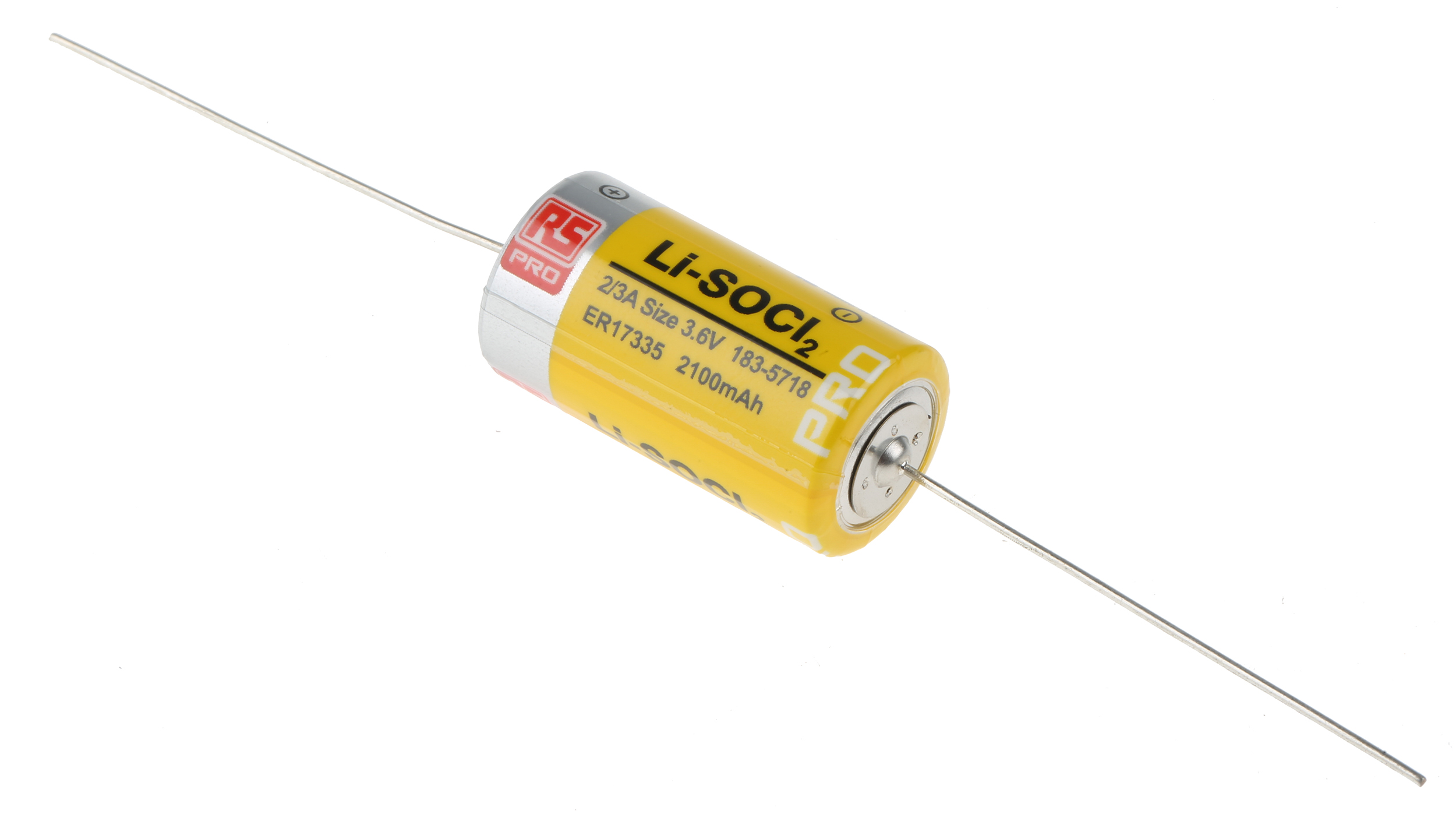 This is ER 17335 2/3A- Long PIN manufactured by RS PRO. The manufacturer part number is 183-5718. The module has the capacity of 2.1ah. The given dimensions of the product include 17 dia. x 33.5mm. Its brand range is rs pro . The number of supplied batteries is/are 1 . It comes with a/an er17335 IEC name . The nominal voltage of the product is 3.6v. It has a/an lithium thionyl chloride chemistry . The terminal is a standard type. The product is available in 2/3 a size.