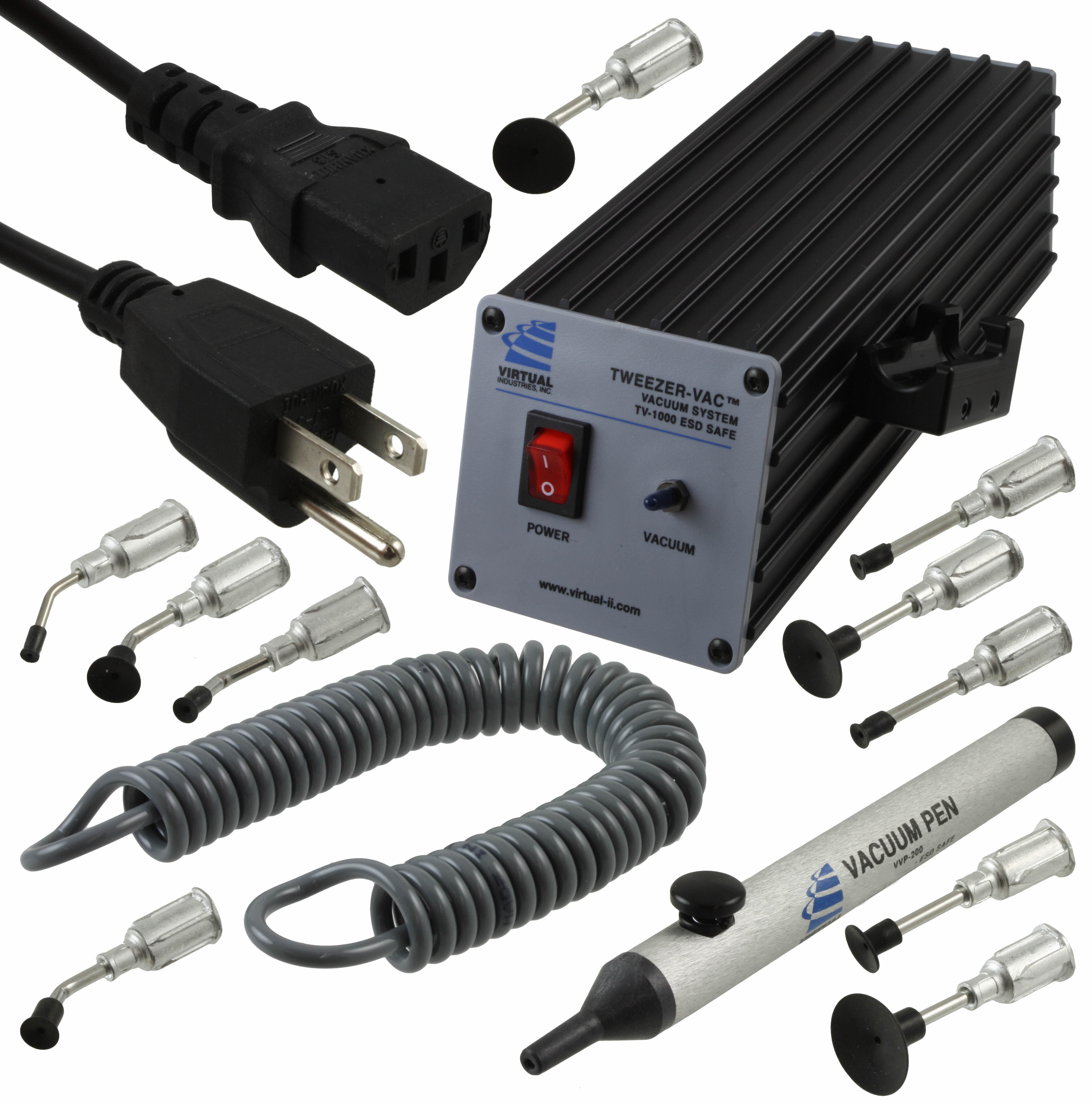 This is manufactured by Chip Quik Inc.. The manufacturer part number is TV-1000. This is basically a useful and handy vacuum system, tweezer kit. It is assigned with possible HTSUS value of 8414.10.0000. It is shipped in box package . The product tweezer-vac™, is a highly preferred choice for users. The product is not applicable. In addition, it is reach unaffected. Its typical moisture sensitivity level is not applicable. The product is suitable for use with smd components. It has a long 3 weeks standard lead time. The product is designated with the ear99 code number.