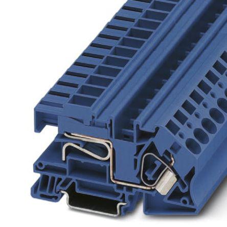 This is manufactured by Phoenix Contact. The manufacturer part number is 3038244. The product carries single levels. The product has a current rating of 57a. Moreover, the product has a nominal 400 v voltage rating. The product stn 10, is a highly preferred choice for users. It has a decent blue colour. It has a model number stn 10. It allows spring clamp termination method. Concerning wire's size, it is 24 → 6 awg. It is assigned with possible HTSUS value of 8536.69.8000. The product is rohs compliant. Moreover, it has special, hybrid terminal style. It is designed from highly reliable polyamide (pa), nylon insulating material. It comes in bus bar - side configuration. The product carries possible position value of 2. A 0.2-16mm² of wire gauge. Additionally, the 2.264" (57.50mm) is the maximum height of the product. It has an integral blue housing colour. It carries ul94 v-0 of material flammability rating. The phoenix contact's product offers user-desired applications. It has a stripping length of 18mm. Its typical moisture sensitivity level is not applicable. An IEC current of 57 a. The product carries 1 levels. While 6-24 awg is its range or wire gauge. The built-in terminal is 10.0mm wide. The nominal voltage of the product is 400 v. The product is available in din rail configuration. The product clipline stn, is a highly preferred choice for users. Its accurate length is 3.425" (87.00mm). In addition, bulk is the available packaging type of the product. The product is designated with the ear99 code number.
