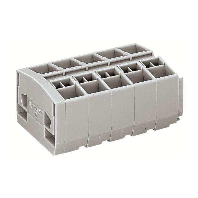 This is manufactured by WAGO Corporation. The manufacturer part number is 264-255. It is assigned with possible HTSUS value of 8536.90.4000. The product is rohs3 compliant. Moreover, it has push in, spring terminal style. It comes in middle configuration. The product carries possible position value of 20. A 0.08-2.5mm² of wire gauge. It has an integral gray housing colour. The wago corporation's product offers user-desired applications. Its typical moisture sensitivity level is not applicable. An IEC current of 24 a. The product carries 1 levels. While 12-28 awg is its range or wire gauge. It has a long 12 weeks standard lead time. The built-in terminal is 57.0mm wide. The nominal voltage of the product is 800 v. The product is available in direct mount configuration. In addition, box is the available packaging type of the product. The product is designated with the ear99 code number.