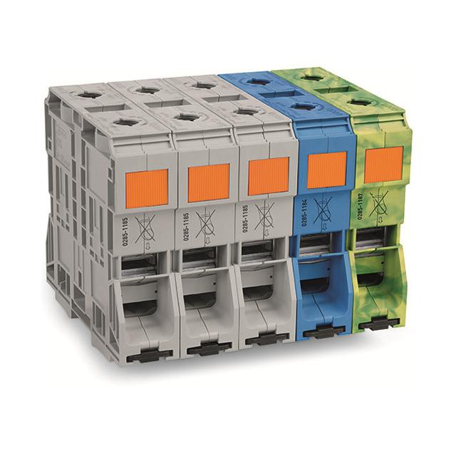 This is manufactured by WAGO Corporation. The manufacturer part number is 285-1169. It is assigned with possible HTSUS value of 8536.90.4000. The product is rohs3 compliant. Moreover, it has push in, spring terminal style. It comes in middle configuration. The product carries possible position value of 10. A 50-185mm² of wire gauge. In addition, it is reach unaffected. It has an integral blue, gray, green, yellow housing colour. The wago corporation's product offers user-desired applications. Its typical moisture sensitivity level is not applicable. An IEC current of 353 a. The product carries 1 levels. While 350mcm (kcmil)-1/0 awg is its range or wire gauge. While 600 v is the typical voltage of the product. It has a long 12 weeks standard lead time. The built-in terminal is 160.0mm wide. The nominal voltage of the product is 1.5 kv. The splendid features of the product include block of 5. The product is available in din rail configuration. In addition, box is the available packaging type of the product. The typical current includes 310 a. The product is designated with the ear99 code number.